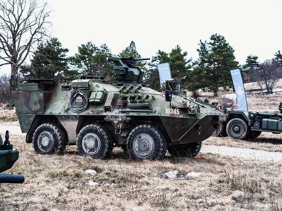 Midweight RCWS armed with the 40×53 mm GMG grenade machine gun. C-UAS ready, gyro-stabilised, and capable of engaging stationary and moving targets on the move.